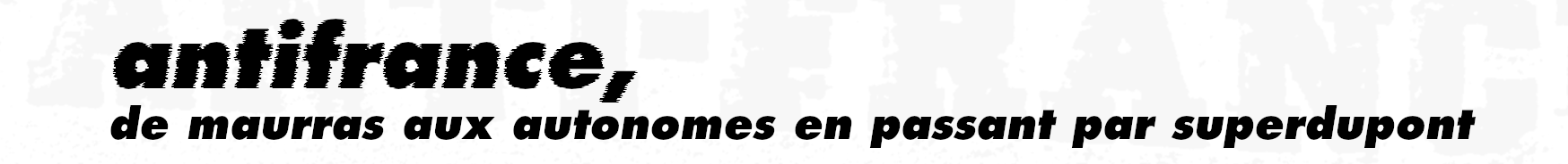 Ces quelques lignes parlaient déjà à de nombreuses personnes qui marchaient hors des clous, vouant aux gémonies l’organisation dominante et formant cet antimonde que le géographe roger brunet tentera de définir dans les années 80 (un espace échappant à tout contrôle institutionnel). Le tract vit le jour autour des années 2000, et depuis le cri d’antifrance vaincra a résonné dans de nombreux corps et lieux, il est donc plus que temps d’esquisser l’histoire (approximative) d’un terme qui existera probablement tant que la france existera !